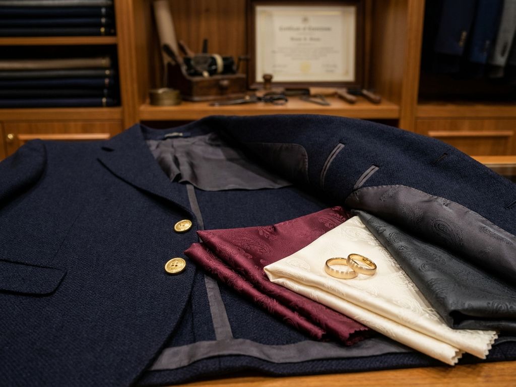 Choosing the right suit lining for your wedding involves considering material, colour, and coverage level. The lining affects comfort, breathability, and style while reflecting your personality through subtle details. Popular options include silk for luxury, viscose for versatility, and cotton blends for summer weddings. Your choice should complement the suit fabric, wedding season, and level of formality.