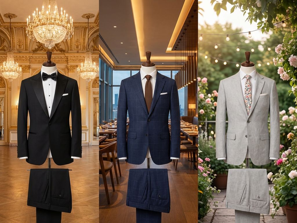 Outdoor wedding considerations include weather unpredictability, temperature changes throughout the day, and practical movement requirements. Choose suits with natural stretch, unlined or half-lined construction, and wrinkle-resistant fabrics. Avoid heavy wools or rigid constructions that become uncomfortable in warm weather or during active outdoor celebrations.