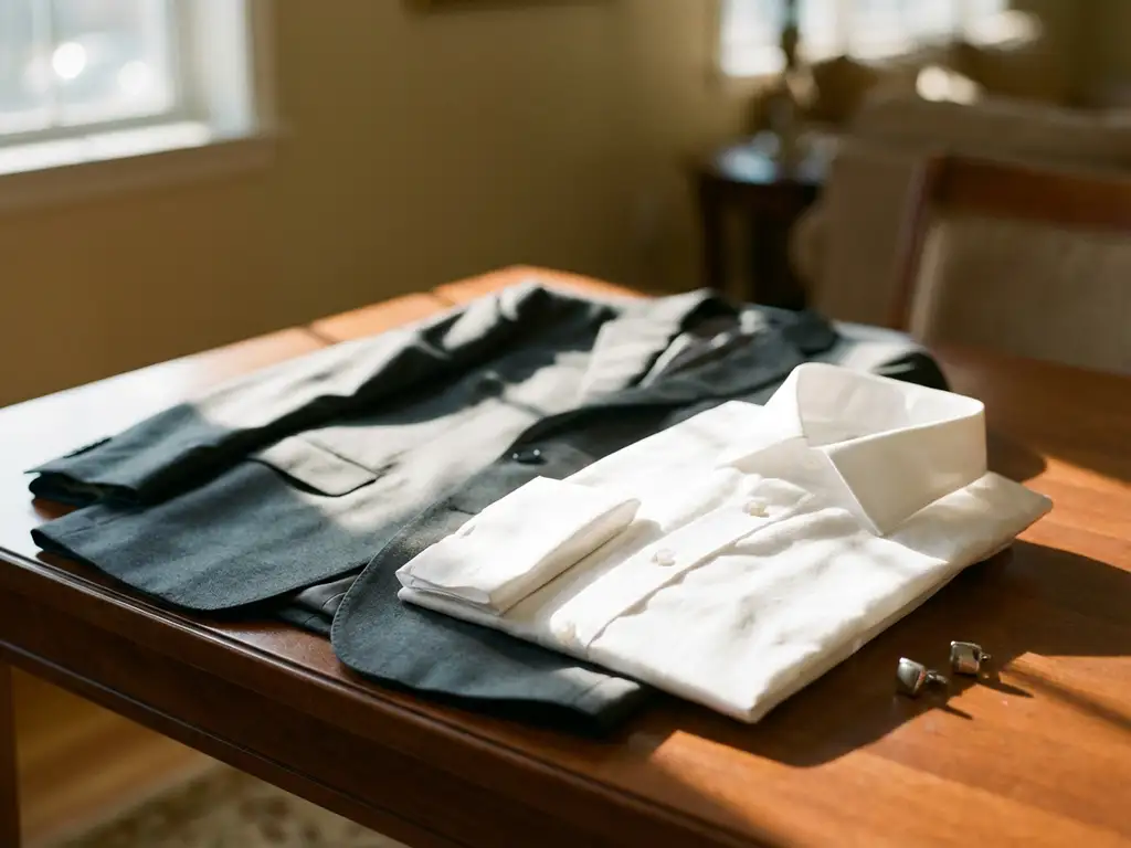 Vermijd altijd het combineren van twee ruitpatronen, ook al verschillen ze in grootte. Dit creëert visuele chaos en maakt je outfit onrustig. Voor een moderne, casual zakelijke look kun je experimenteren met zeer subtiele texturen, zoals een licht geweven oxfordhemd, wat diepte toevoegt zonder te botsen met het geruite patroon van je kostuum.