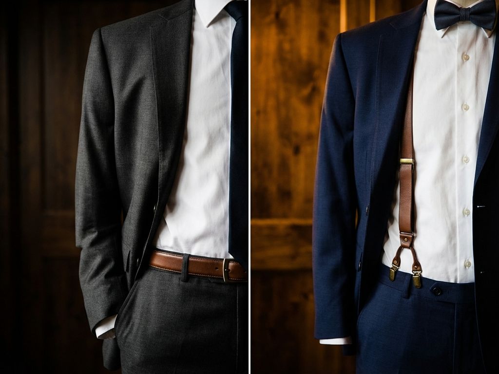 Suspenders offer grooms superior comfort and suit drape compared with belts, making them an increasingly popular choice for wedding attire. They eliminate waistline pressure during long ceremonies, create cleaner trouser lines, and provide a distinctive vintage aesthetic that complements both classic and modern wedding suits. The choice between suspenders and belts depends on personal comfort preferences, suit style, and the overall wedding aesthetic you want to achieve.