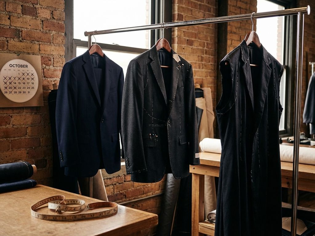 - Made-to-measure suits: 10–12 weeks for initial consultation, 8–10 weeks for first fitting, 2–3 weeks for final adjustments