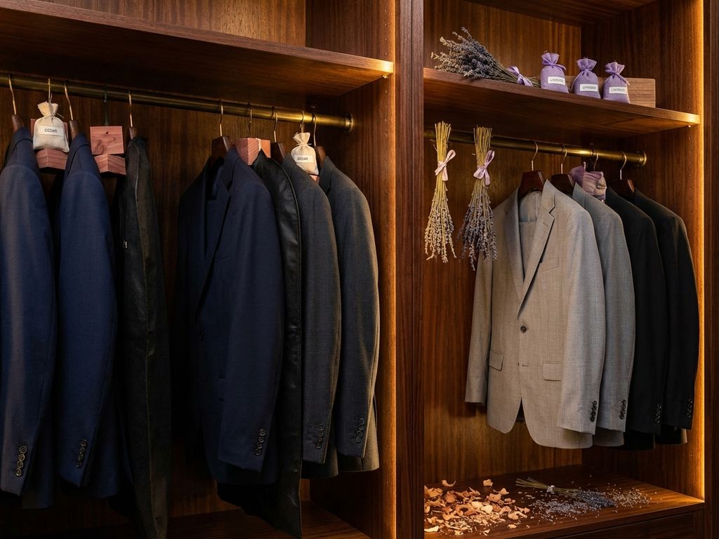 La gestion des odeurs doit être soigneusement étudiée lorsque l'on combine ces options. Commencez par utiliser le cèdre comme protection principale, puis ajoutez progressivement de petits sachets de lavande pour tester l'équilibre des parfums. Placez les sachets de lavande loin du contact direct avec les vêtements pour éviter tout transfert de parfum, tandis que le cèdre peut rester en contact direct avec les costumes. Le cèdre peut rester en contact direct avec les costumes. Ce positionnement vous permet de bénéficier des bienfaits du parfum sans envahir vos vêtements.