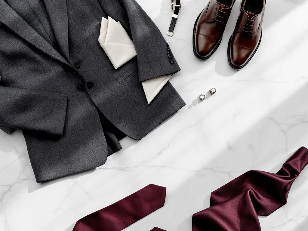 Quels sont les accessoires qui complètent un costume de mariage gris anthracite ?