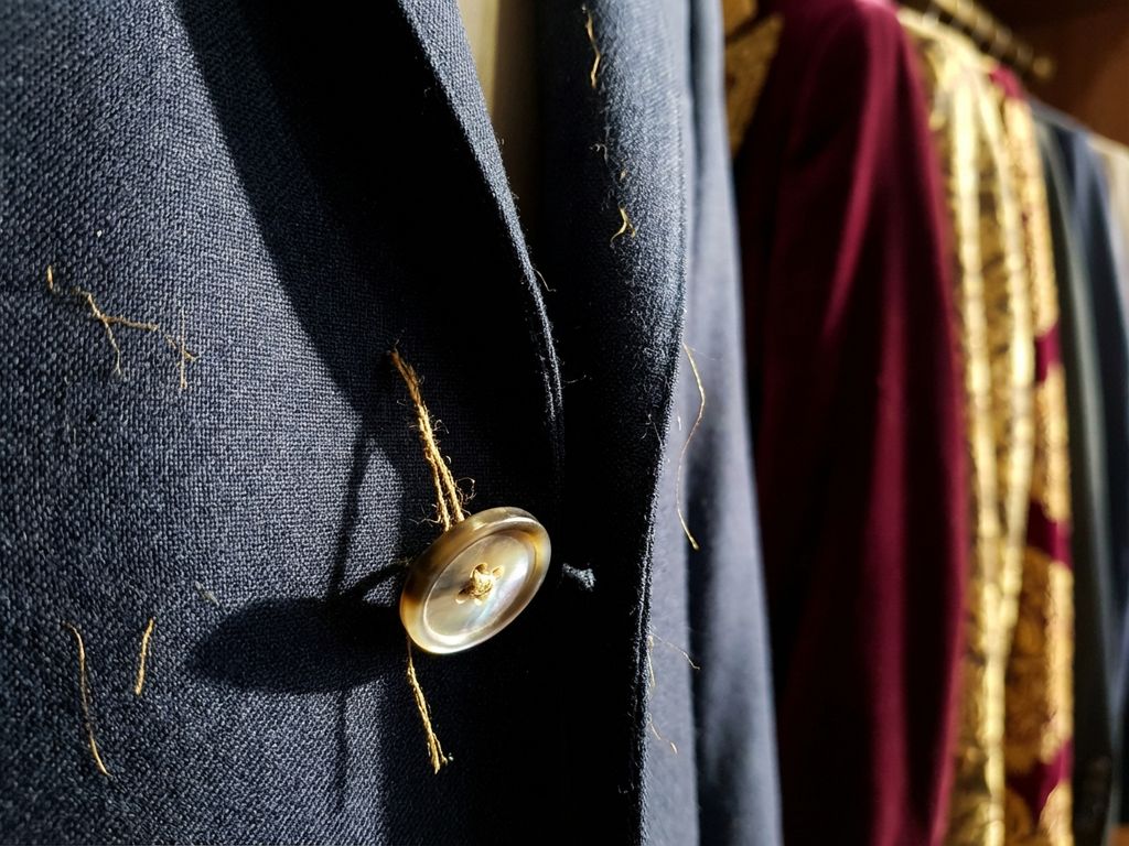 During regular suit maintenance, run your fingers along the button line to feel for any buttons that sit differently from the others. Buttons that feel raised, tilted, or unstable compared to their neighbours likely need reinforcement or replacement.