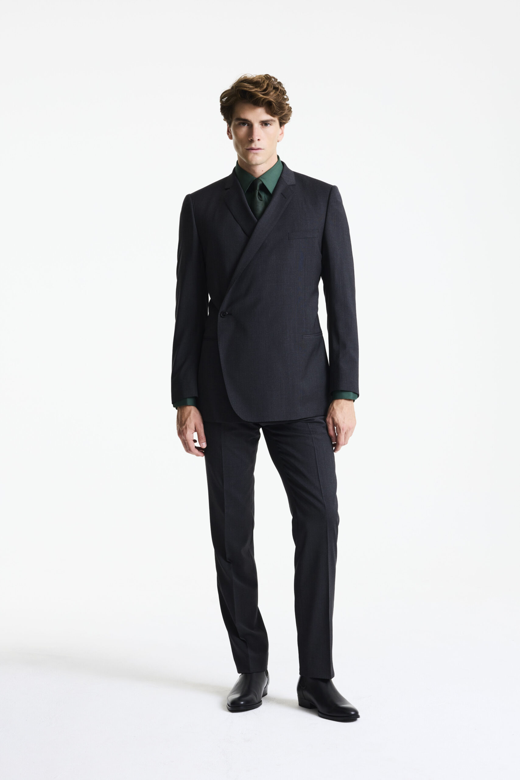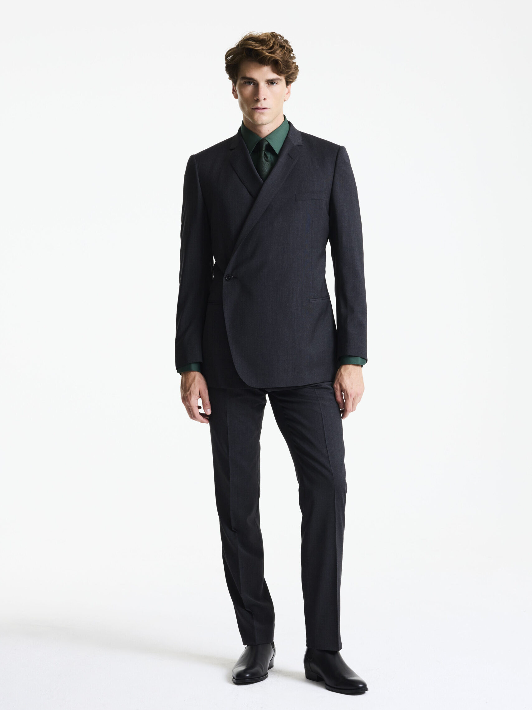 Dark Wool Suit with Overlapped Blazer – Foliage