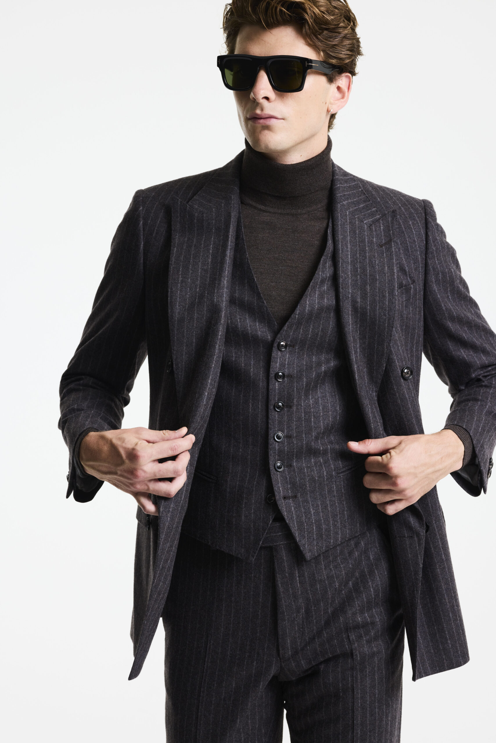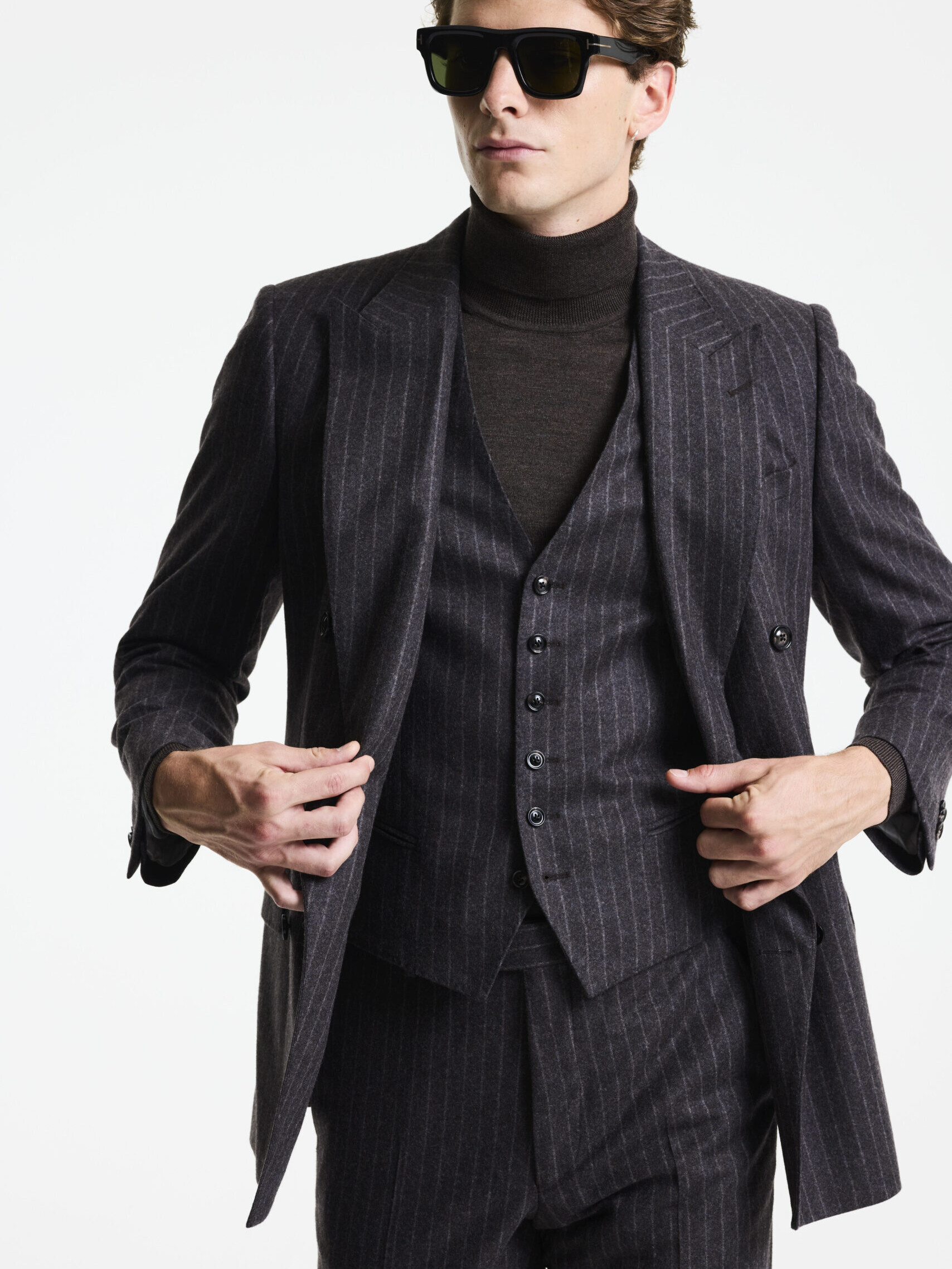 Dark Grey Pinstripe 3-Piece Suit in Wool – The Orator