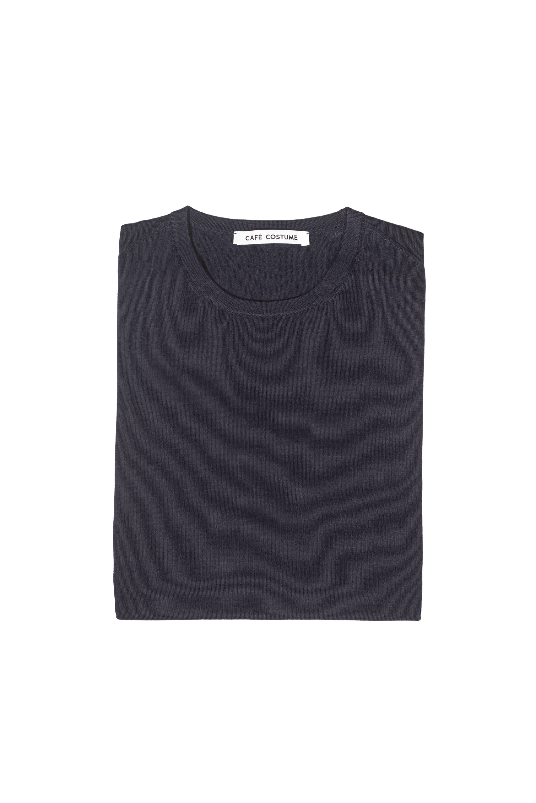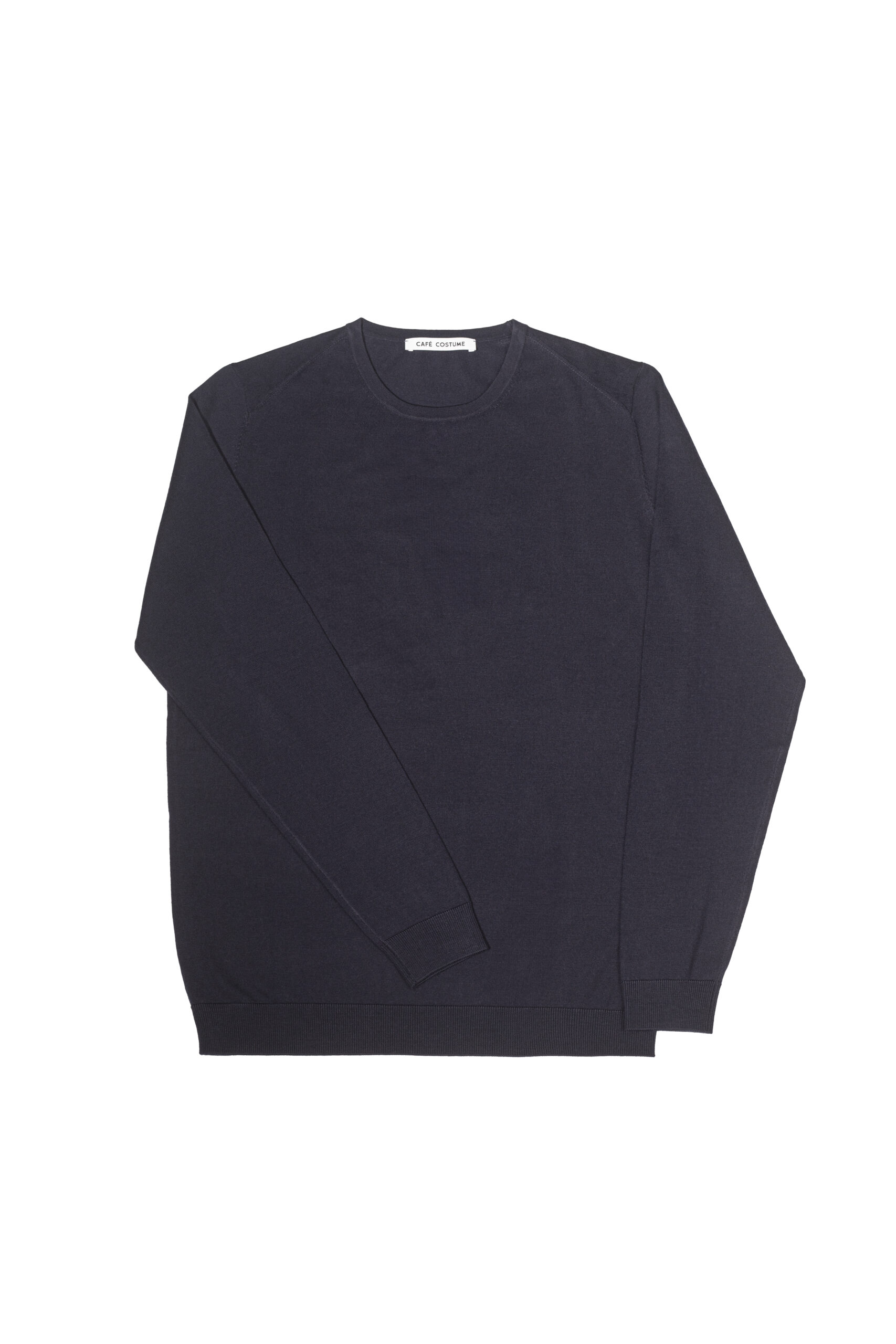 A refined dark navy long sleeve crewneck crafted in Italy from lightweight fine knit. Understated, versatile, and effortlessly smart.
