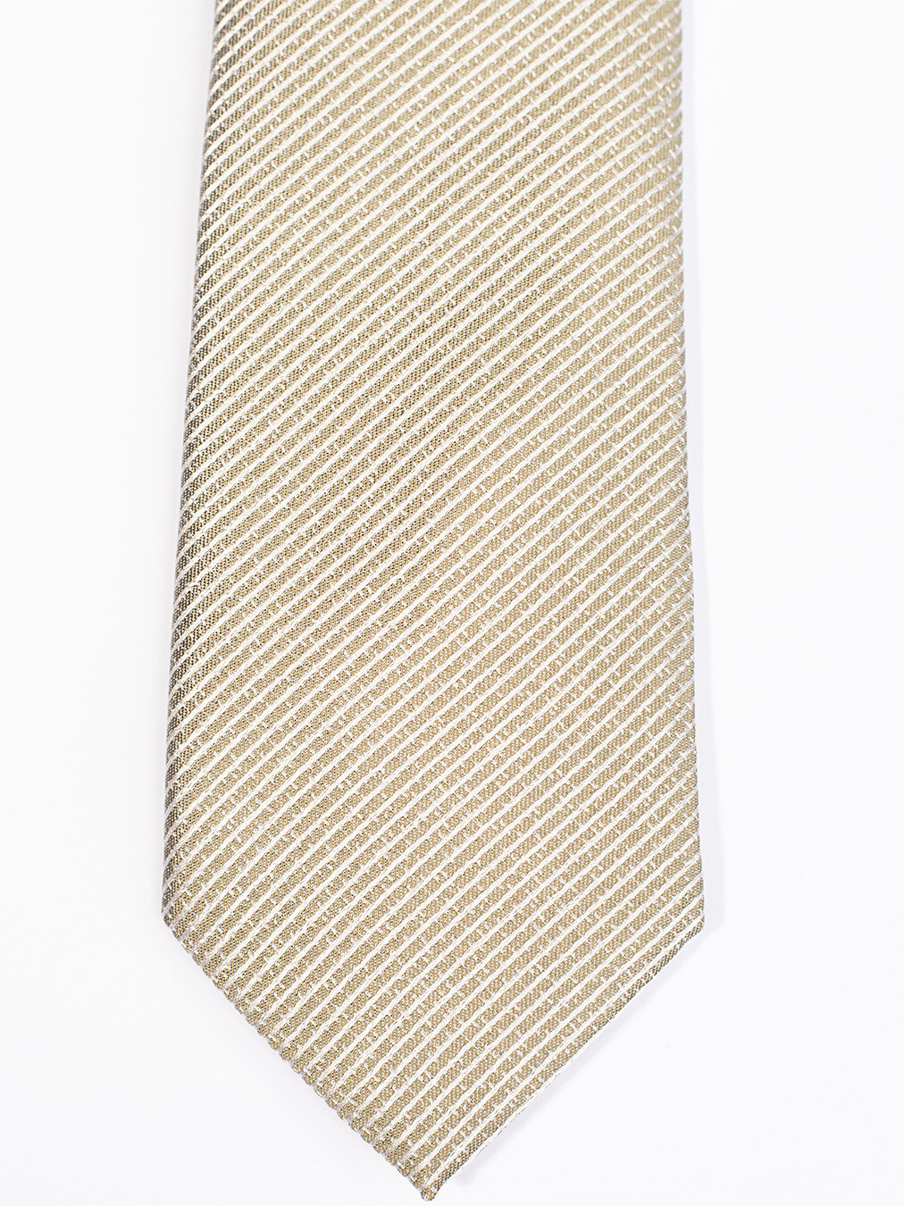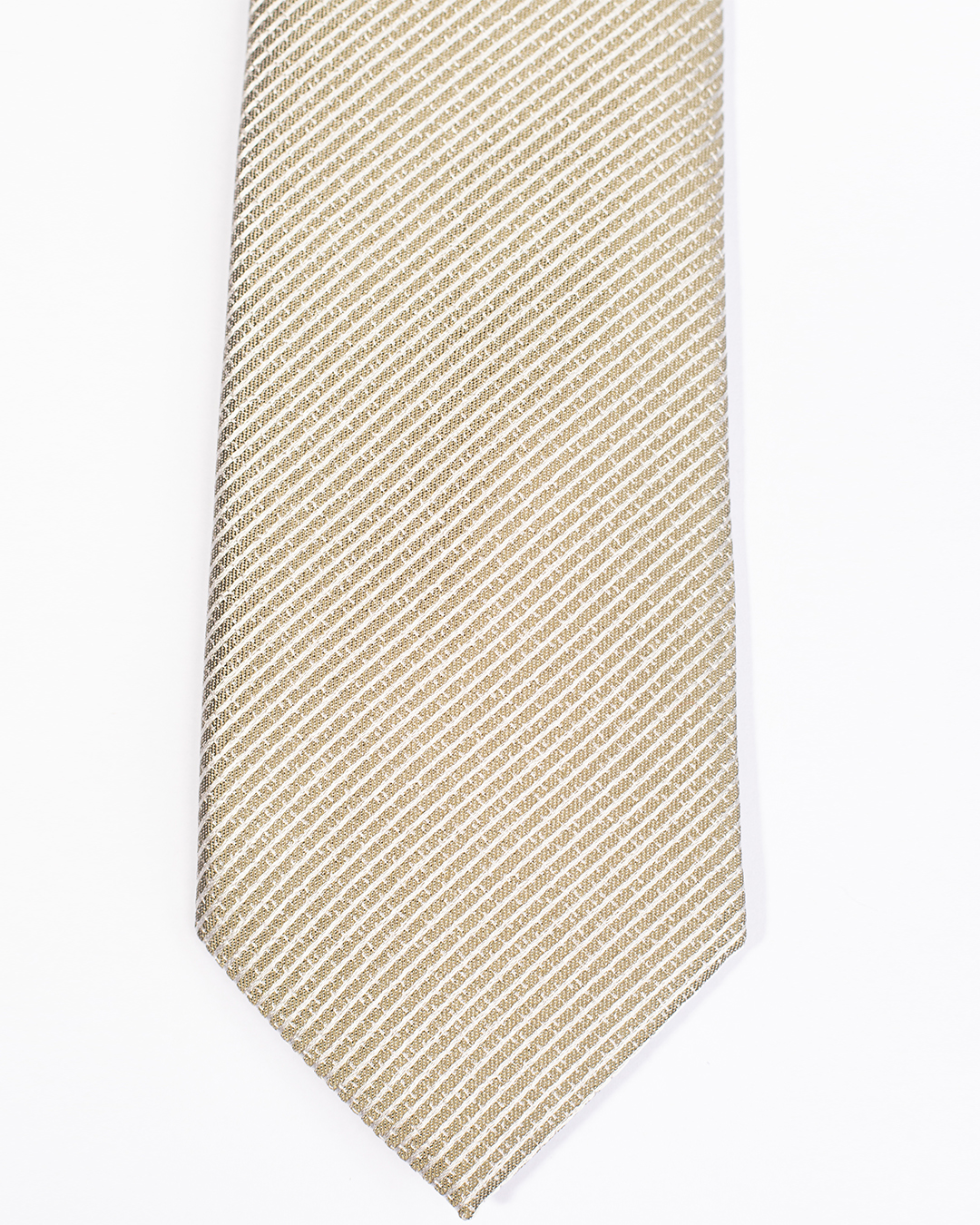 Feldberg Green – Beige and White Diagonal Striped Woven Silk Tie